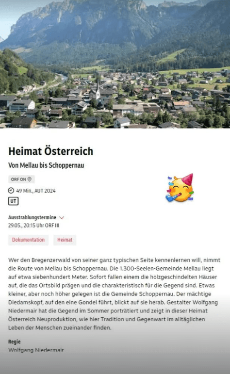 Ausstrahlung meines Beitrages bei Heimat Österreich: